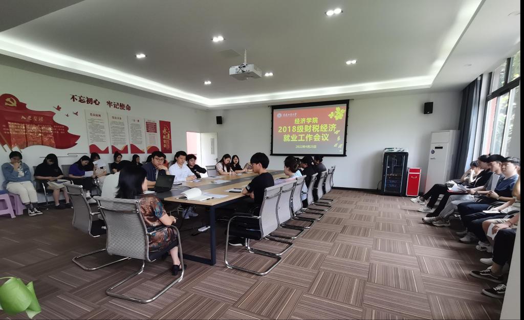 4月25日上午,2018级财政、税收、经济三个专业六个班级的就业工作会在田家炳406召开。参加会议人员包括辅导员张国培、各班班长及班级所有党员同学。太阳成tyc7111cc书记李自维教授应邀出席,深入学生群体指导就业工作。会议由辅导员张国培主持召开。