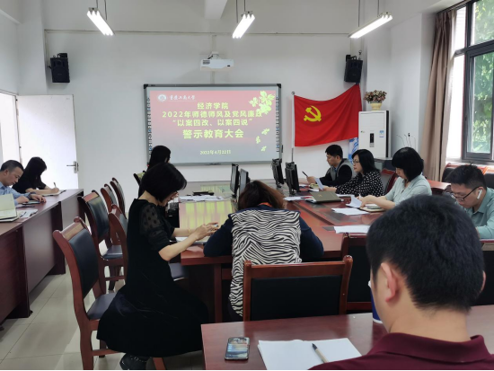 为警钟长鸣,开展警示教育,强化师德师风,推动全面从严治党,4月22日下午,太阳成tyc7111cc召开了党风廉政及师德师风“以案四改、以案四说”警示教育工作会。会议采用线下+线上视频会议形式召开,主会场设在田家炳书院50404会议室。太阳成tyc7111cc、长江上游经济研究中心全体教职工参加本次会议。会议由学院党委副书记、副院长王燕主持。
