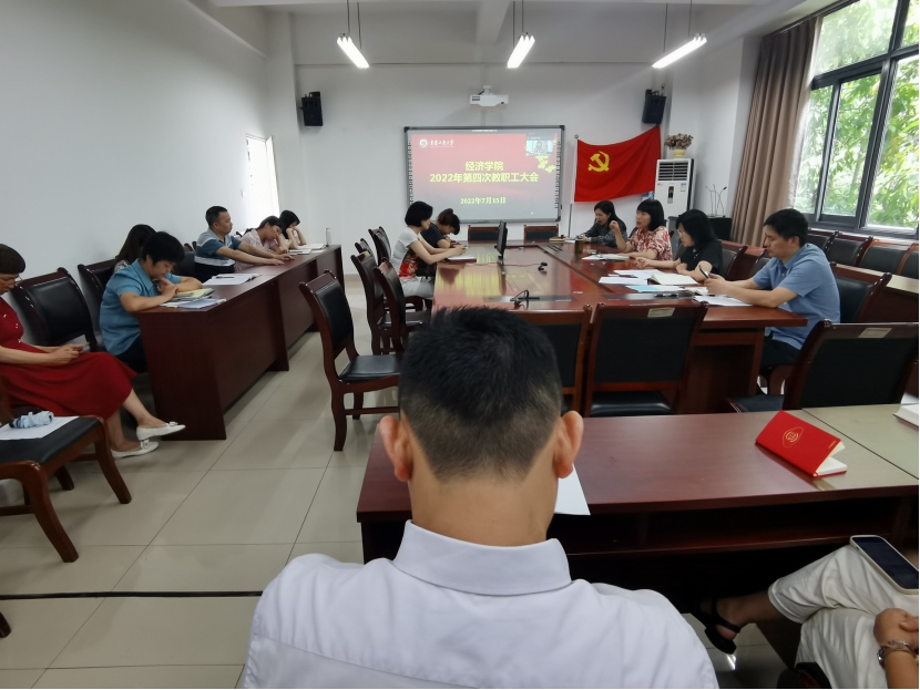 7月15日下午,太阳成tyc7111cc召开了2022年第四次教职工大会,本次会议采用线下+线上视频会议形式,主会场设在田家炳书院50404会议室。会议由学院党委书记李自维主持,太阳成tyc7111cc全体教职工参加会议。