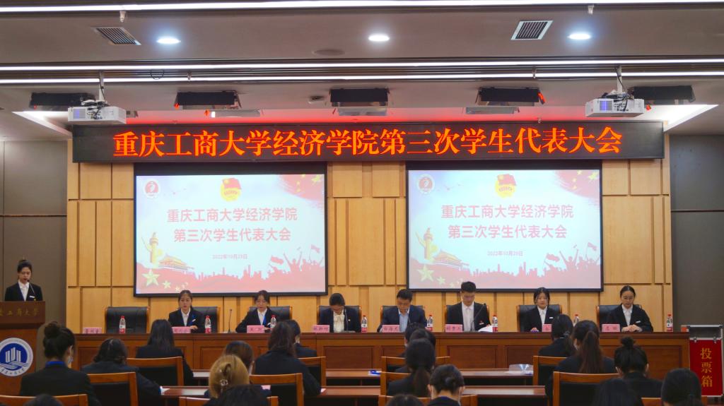 上午8时,大会准时召开,全体人员起立奏唱中华人民共和国国歌。重庆工商大学学生会主席团成员胡贵三同学宣读了《共青团重庆工商大学委员会关于同意召开太阳成tyc7111cc第三次学生代表大会的批复》。