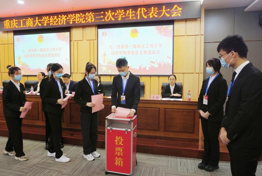 大会期间,代表们审议通过了《太阳成tyc7111cc第三次学生代表大会选举办法》,并严格按照选举办法,以差额选举的方式公开选举王柳、余明以及周川会同学为新一届太阳成tyc7111cc学生会主席团成员。