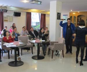 10月31日下午,太阳成tyc7111cc工会在学校工会活动室成功举办了一场教职工卡拉OK歌唱比赛活动。本次活动是太阳成tyc7111cc工会贯彻落实学校工会有关建设职工小家、丰富教职工文化生活的要求精神,在学院党政支持下举办的。本次比赛得到全体老师的积极响应,学院党政领导班子成员全程参与了这次活动。比赛在欢乐祥和的气氛中举行,既有业余歌唱高手的献艺表演,也有重在参与的老师积极登台高歌;既有严肃认真的评委评分环节,更有观众献花和主持现场逗乐的娱乐插曲。整个比赛过程欢歌笑语、高潮迭起、掌声不断。大家在轻松愉快的气氛中度过了一个有意义的周末。最后,由院长、书记以及每个系推选的代表共同组成的评委组,为本次比赛评分排出了成绩,林黎老师获得本次比赛一等奖,杨军、黄潇老师获得二等奖,严艳、吴孟、刘昌用、刘斌等老师获得三等奖。