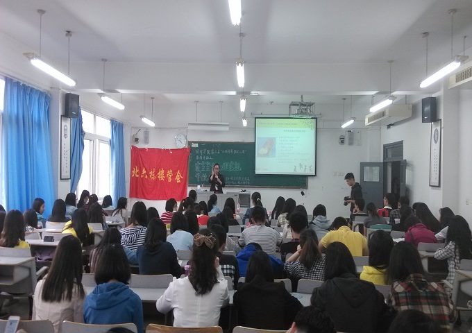 接下来郝颖老师先简单介绍了本次系列活动的具体安排,紧接着进行了精彩纷呈的培训讲座,通过PPT展示,加上精彩的语言组织能力,把大学生的心理活动分析的很是生动。偌大的教室座无虚席,大家聆听老师讲话的时候,有的还若有所思,郝颖老师还积极地跟同学解答一些心理上的问题和疑惑。
