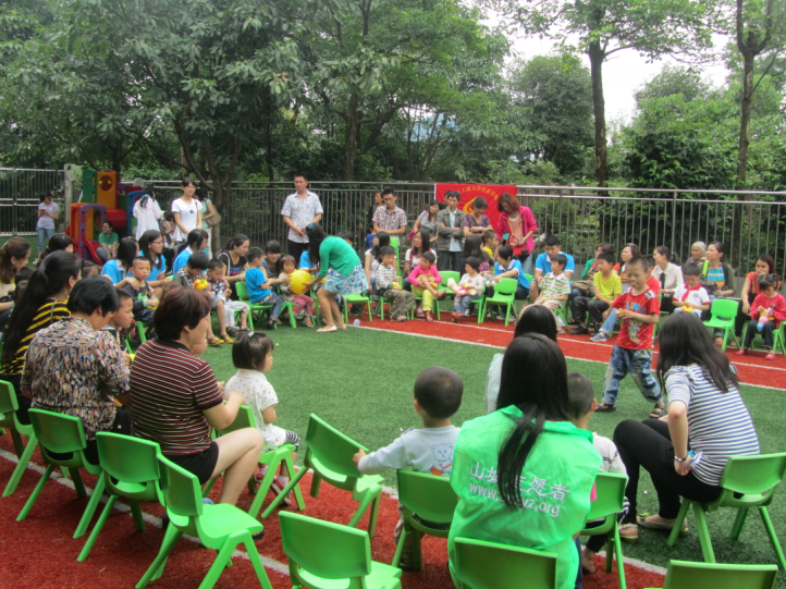 活动在志愿者《庆祝六一》的歌声中拉开序幕。志愿者为小朋友分发六一礼物,帮助家长写下孩子的梦想,手把手的教小朋友折千纸鹤,并将千纸鹤送给幼儿园,望孩子们早日实现梦想。在“童趣乐享梦”的游戏环节中,志愿者和小朋友一起玩“推车车”、“击鼓传花”等游戏,小朋友们乐在其中,欢乐的笑声回荡在幼儿园。针对小朋友的特殊情况,志愿者们在游戏中采取一对一的形式,鼓励每一个小朋友积极参加并确保每个小朋友的安全。从游戏中的热心陪伴,到用餐中的体贴照顾,都体现了“奉献、友爱、互助、进步”的志愿服务精神。