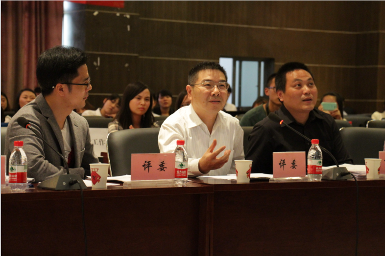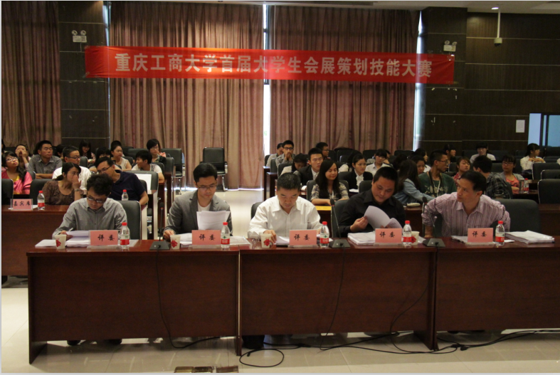 5月31日下午,太阳成tyc7111cc首届会展策划技能大赛在田家炳书院408教室举行,本次比赛由太阳成tyc7111cc主办,C&E(会展)研究会和易览会展服务有限责任公司联合承办。太阳成tyc7111cc党总支张筱璐书记、陈新力院长、雷菁副书记出席了本次活动,同时还邀请到贸易经济系主任、会展专业导师杨军副教授,重庆国际博览中心常务副总经理纪伟先生在内的4位会展行业的专业人士担任评委老师。