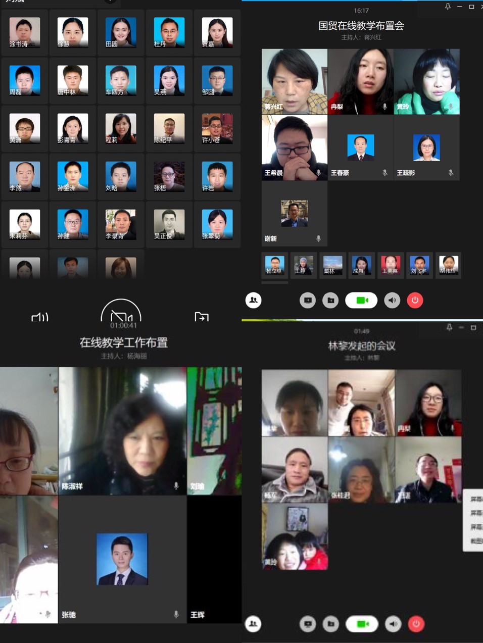 国贸系召开在线教学布置研讨会,系主任蒋兴红副教授主持了本次会议。全体任课教师就企业微信平台和学校在线教学平台进行了学习和研讨,明确各老师在现阶段需要完成的具体工作。