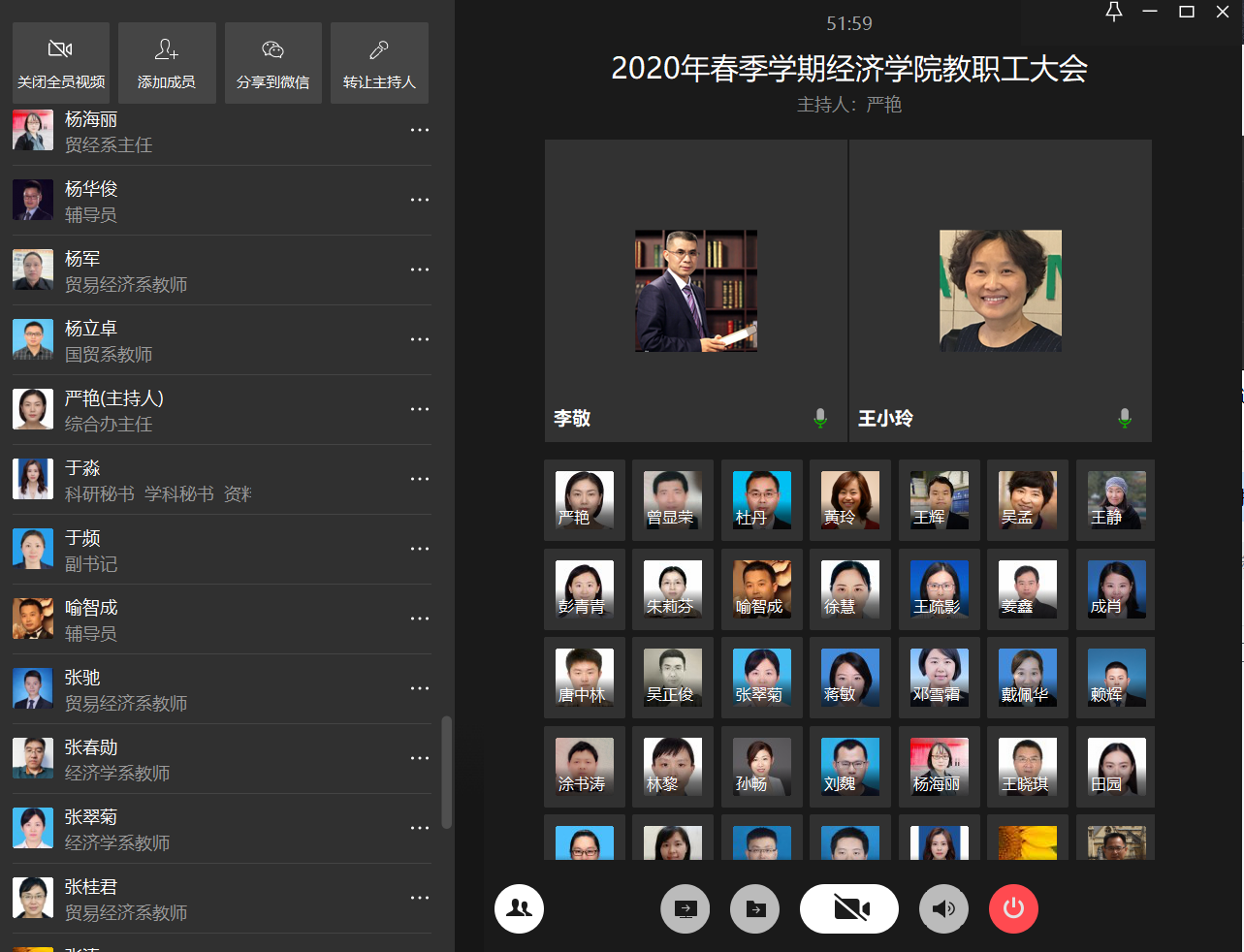 2020年2月25日下午,太阳成tyc7111cc采用视屏会议形式召开了新学期教职工大会,会议由院长李敬主持,太阳成tyc7111cc院领导及全体教职工全程参与了视频会议。