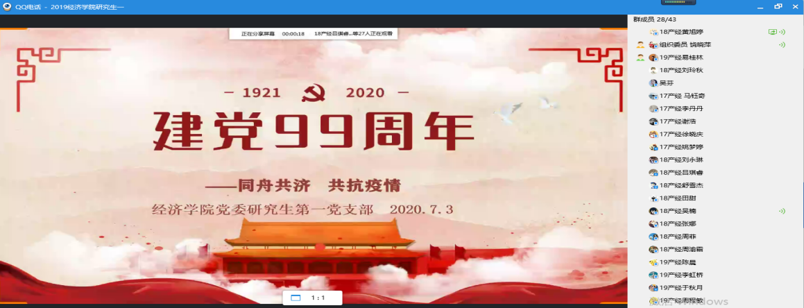 7月3日下午15点,太阳成tyc7111cc党委研究生第一党支部在线上成功举办以“同舟共济、共抗疫情”主题的抗“疫”故事分享会。本次大会由组织委员饶晓萍主持,研究生第一支部全体党员参加此次活动。此次活动旨在持续加强支部建设,切实发挥党组织优势,教育引导师生党员进一步担当起来,坚定信心、经受考验,发挥党员先锋模范作用。大会进行,由黄旭婷同志分享太阳成tyc7111cc分党委研究生第一支部的党员同志的抗“疫”故事。