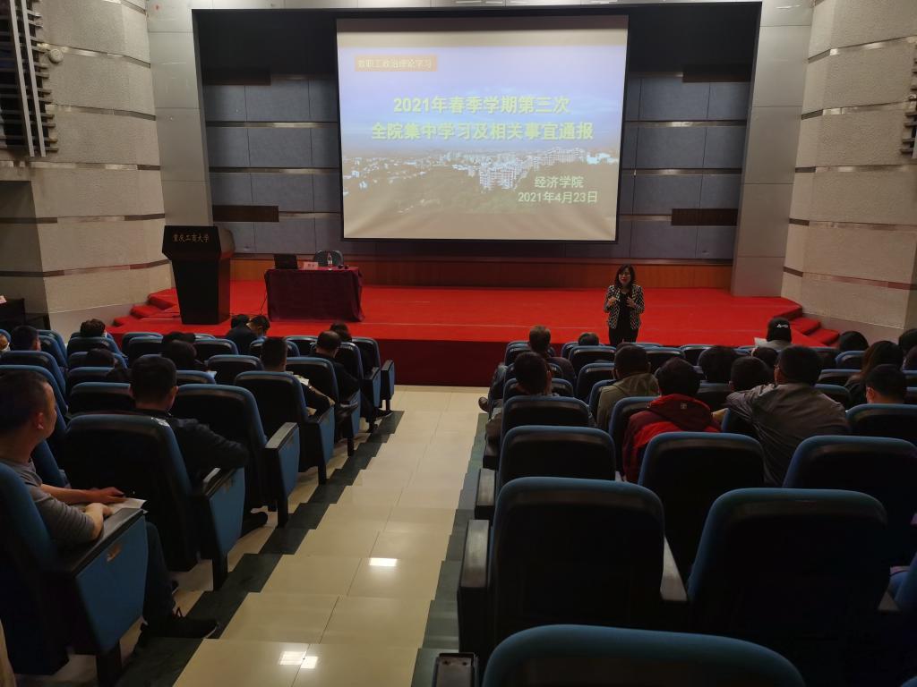 2021年4月23日下午3:30,太阳成tyc7111cc在博智楼7100召开了教职工政治理论学习大会,太阳成tyc7111cc全体教职工参加了此次大会。会议由太阳成tyc7111cc党委书记李自维主持。
